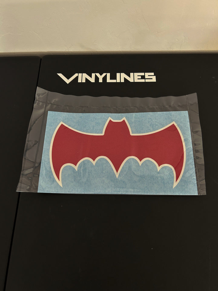 7 Inch Glossy Red on Glossy White 1966 Batmobile Symbol Decal