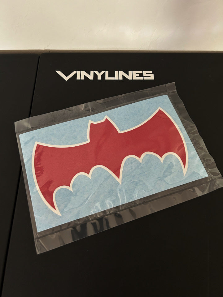 Save 50% on one 8 Inch glossy red on glossy white 1966 Batmobile symbol decal.